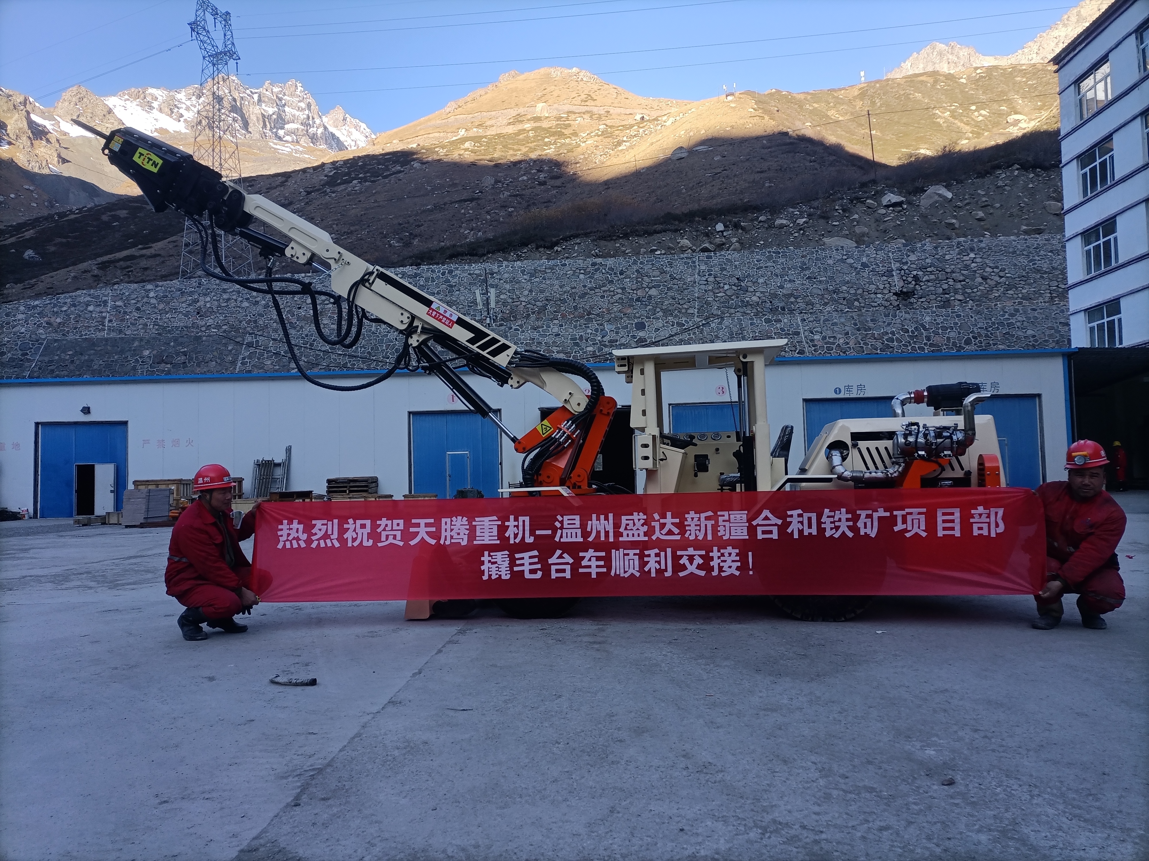 熱烈祝賀天騰重機-溫州盛達新疆合和鐵礦項目部撬毛臺車順利交接!